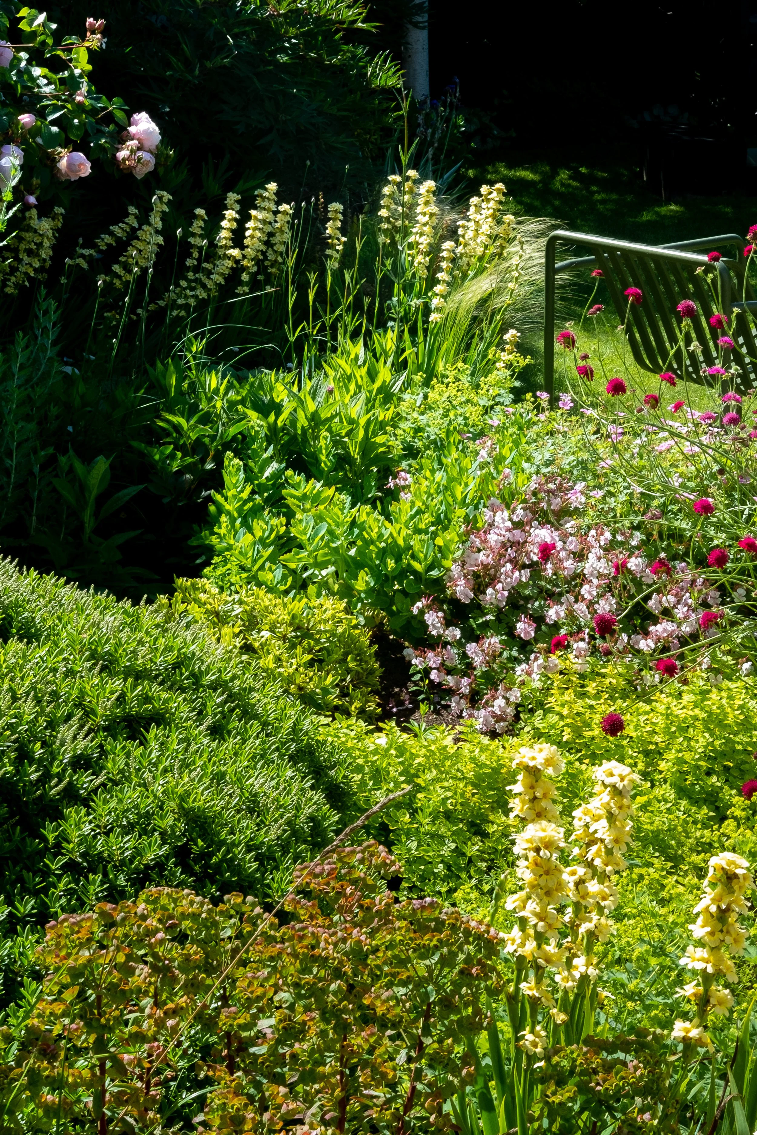 This small family garden combined a generous tapestry of planting with a simple palette of materials - dutch bricks, cotswold chipped stone and weathered steel. The space was terraced to deal with level differences and to define the different areas and functional spaces.